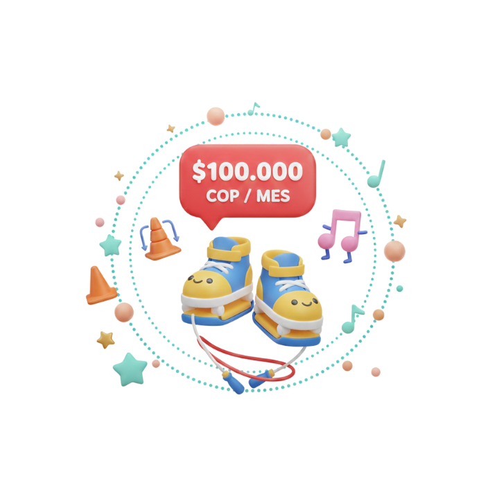 Actividades de salto, coordinación y cardio-baile. Precio: $100.000 mensual.